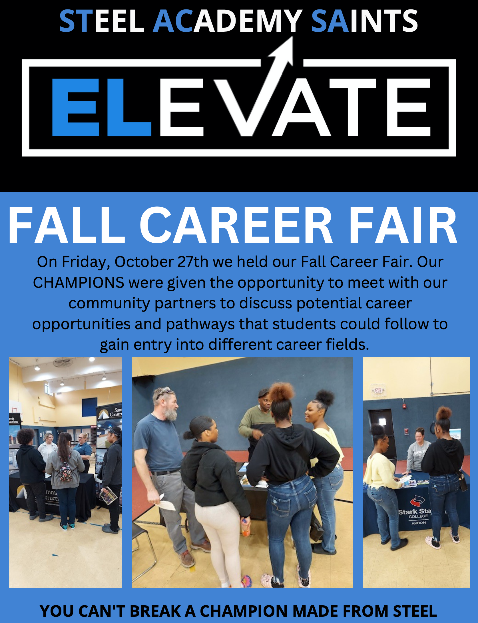 Be sure to take a look at this week's newsletter to see photos of our students’ art projects, our Fall Career Fair, and other news happening at The Steel Academy.