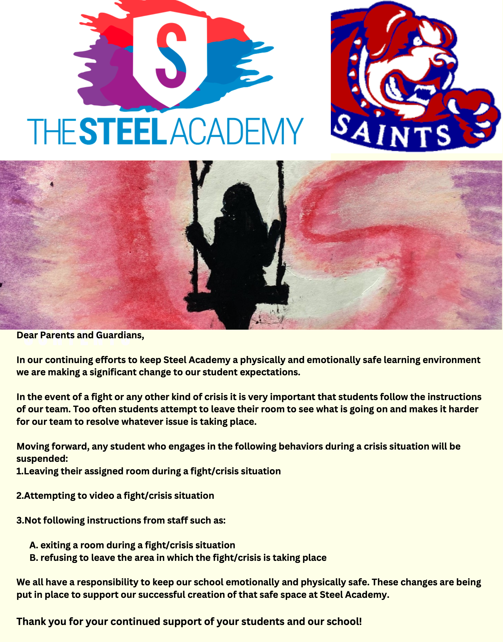 The Steel Grill students' ended December with a smash! Smash burgers that is! Complete with all the trimmings and a fantastic dessert! We can't wait to see what 2023 has in store for the Steel Grill! The Construction program used their growing skills to create a festive door for our day with the Arts celebration. Boys high school basketball starts this week with two games at home. Please come out and support your Steel Academy Saints with good sportmanship and school spirit! Read more about these news items and other important information in this week's newsletter.